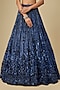 Featuring a deep metallic navy blue lehenga net with hand embroidery. It is paired with an embroidered blouse and a dupatta. Accentuate the designer lehenga with statement jewellery and heels for a wedding, engagement or sangeet ceremony.