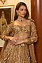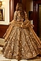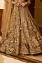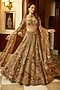 Featuring a gold lehenga in tulle net and satin base with hand embroidery. It is paired with a blouse and a dupatta. Accentuate the designer lehenga with statement jewellery and heels for a wedding, a bridal look or sangeet ceremony.