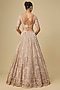Featuring a grey and peach lehenga net with hand embroidery. It is paired with an embroidered blouse and a dupatta. Accentuate the designer lehenga with statement jewellery and heels for a wedding, engagement or sangeet ceremony.