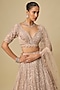 Grey & Peach Net Hand Embroidered Lehenga Set