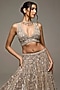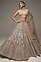 Featuring a grey lehenga in tulle net base with crystal and sequins hand embroidery. It is paired with a blouse and a dupatta. Accentuate it with statement earrings and heels for weddings or engagement ceremonies.