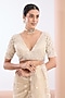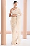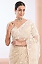 Featuring an ivory saree in tulle net and crepe base with pearl embellishment. It is paired with an embroidered blouse. Accentuate it with statement jewellery and heels for a wedding or sangeet ceremony.
