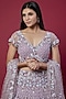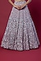 Featuring a lavender lehenga in tulle net and art satin silk base with sequins, cutdana, glass beads and badla hand embroidery, including floral pattern. It is paired with a matching blouse and a dupatta.