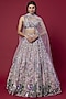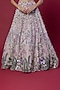 Featuring a lilac lehenga in tulle net and art satin silk base with multi-colored motifs, sequins, glass beads and floral embroidery. It is paired with a matching blouse and a dupatta.