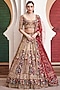 Featuring a maroon and gold lehenga in viscose satin and tulle net base with sequins hand embroidery. It is paired with an embroidered blouse and a dupatta. Accentuate this designer lehenga set with statement jewellery and heels for a perfect bridal look.