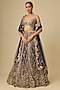 Navy Blue & Gold Net Hand Embroidered Lehenga Set
