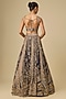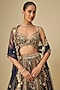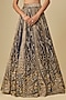 Featuring a navy blue and gold lehenga net with hand embroidery. It is paired with an embroidered blouse and a dupatta. Accentuate the designer lehenga with statement jewellery and heels for a wedding, engagement or sangeet ceremony.
