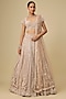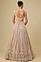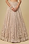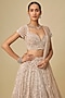 Featuring a pinkish grey and ivory lehenga net with sequins and crystal hand embroidery. It is paired with an embroidered blouse and a dupatta. Accentuate the designer lehenga with statement jewellery and heels for a wedding, engagement or sangeet ceremony.