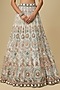 Featuring a powder blue and peach lehenga net with hand embroidery. It is paired with an embroidered blouse and a dupatta. Accentuate the designer lehenga with statement jewellery and heels for a wedding, engagement or sangeet ceremony.