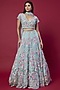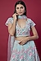 Featuring a sky blue lehenga in tulle net and art satin silk base with sequins and floral motifs embroidery, including crystal and pearls embellishments. It is paired with a matching blouse and a dupatta.