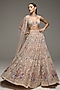 Featuring a soft pink lehenga in tulle net base with hand embroidery. It is paired with a blouse and a dupatta. Style it with statement earrings and heels for weddings or sangeet ceremonies.