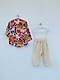 Featuring a multi colored shirt in cotton base with floral print. It is paired with contrasting off white cotton lycra pants.