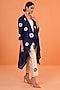 Featuring a blue and ivory jacket in chanderi silk base with embroidery. It is paired with a top and pants. Accentuate it with statement jewellery and heels for a complete festive ready look.