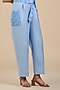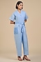 Featuring an ice blue jumpsuit in linen blend base with pockets and cutwork. It is paired with an embroidered belt. Accentuate it with statement jewellery and heels for an evening look.