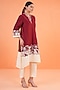 Featuring a maroon kurta in chanderi silk base with resham embroidery. It is paired with pants. Accentuate it with statement earrings and heels for a festive ceremony.