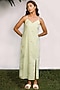 Featuring a green slip dress in cotton base with hand embroidery and a front slit.