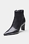 Featuring a pair of black ankle boots in genuine leather base with pointed toe. It has a genuine leather lining and 75mm block heels. They are comfortable all day and look well with dresses, skirts, or jeans for a polished look.