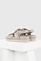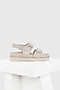 Featuring a pair of nude footbed sandals in genuine leather base with metal tipped velcro straps. It has a genuine leather lining, EVA sole and 45mm block heels. Ideal for casual outing, work wear, or regular use.