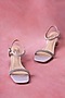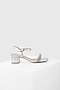 Silver Metallic Foil Leather Jewelled Strap Block Heel Sandals