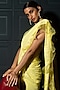 Featuring a lemon yellow chikankari ruffled saree in pure georgette base with cotton thread, mirror, cutdana, beads, pearls, and crystal beaded tassels embroidery. It is paired with a matching blouse.