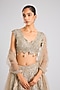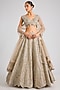 Beige Champagne Tissue Silk Floral Embroidered Handcrafted Lehenga Set