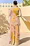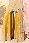 Featuring a canary yellow kurta in organza base with handcrafted zardosi, french knots and aari embroidery. It is paired with sharara pants and a dupatta. Style it with wedges, polki earrings and a sleek braid. Ideal for a festive occasion, haldi ceremony or weddings.