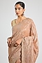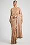 Featuring a caramel taupe saree in tissue silk base with zardosi, french knot, aari and sequins hand embroidery. It is paired comes with an unstitched blouse. Accentuate it with kundan polki jewellery and embellished heels for a wedding or engagement ceremony.