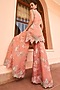 Featuring a coral kurta in organza base with zardosi, aari, french knot and dori embroidery. It is paired with sharara pants and a dupatta. Accentuate with dangler earrings and heels for a sangeet or wedding ceremony.