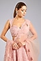 Featuring a coralie rose lehenga in organza base. It is paired with a blouse and a dupatta. Accentuate it with statement earrings and heels for weddings or sangeet ceremonies.