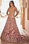Cut Ruby Colored Organza Thread Embroidered Trail Lehenga Set