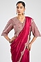 Featuring a cut ruby scalloped saree in mulberry silk base. It is paired with an embroidered blouse. Accentuate it with silver jewellery and heels for a festive occasion, sangeet or engagement ceremony.