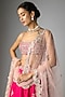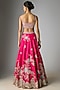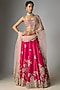 Featuring a dark fuchsia lehenga in organza base with embroidery. It is paired with an embroidered blouse and a dupatta. Style it with zircon jewellery, block heels and a clutch, perfect for a complete bridal look, perfect for a wedding or engagement ceremony.