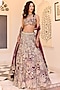 Featuring a dark plum lehenga in mulberry silk base with handcrafted zardosi, french knots, aari and applique embroidery. It is paired with a blouse and a dupatta. Style it with block heels, polki earrings and a sleek braid for a regal look. Ideal for a sangeet ceremony or weddings.