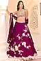 Dark Plum Satin Silk Aari Embroidered Lehenga Set