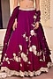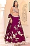 Featuring a dark plum lehenga in satin silk base with handcrafted zardosi, french knots and aari embroidery, including jaal work. It is paired with a blouse and a dupatta. Style it with block heels, polki earrings and a sleek braid for a regal look. Ideal for a sangeet ceremony or weddings.
