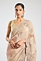 Featuring a dusty lavender saree in mulberry silk base. It is paired with an unstitched blouse. Accentuate it with kundan polki jewellery and embellished heels for a wedding or engagement ceremony.