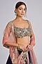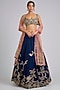 Featuring a french navy lehenga in mulberry silk base. It is paired with a blouse and a dupatta. Accentuate it with kundan polki statement jewellery, a matching potli bag, and elegant heels for a stylish ensemble, ideal for wedding functions, engagement ceremonies or grand festive celebrations.