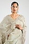 Featuring a frost blue saree in mulberry silk base. It is paired with an unstitched blouse. Accentuate it with kundan polki jewellery and embellished heels for a wedding or engagement ceremony.
