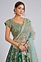 Featuring a jewel green lehenga in mulberry silk base. It is paired with a blouse and a dupatta. Accentuate it with kundan polki statement jewellery, a matching potli bag, and elegant heels for a stylish ensemble, ideal for wedding functions, engagement ceremonies or grand festive celebrations.