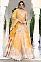 Featuring an orange lehenga in raw silk base with zardosi embroidery. It is paired with an embroidered blouse and a dupatta. Accentuate it with kundan polki jewellery, a floral hairdo, block heels and a potli bag for a complete look, perfect for wedding or engagement ceremony.