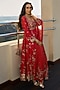 Featuring a rust handcrafted anarkali in mulberry silk base with zardosi, french knots, and aari embroidery. It is paired with a churidar and a dupatta. Accentuate it with kundan polki earrings and heels for festive gatherings or wedding ceremonies.