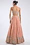 Salmon Peach Tissue Silk Aari Embroidered Lehenga Set