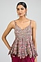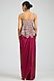 Featuring a sangria plum peplum top in mulberry silk base with embellishments. It is paired with a draped skirt. Style this set set with zircon stud earrings, a clutch bag and metallic heels for a cocktail, sangeet or pre-wedding ceremonies.