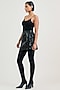 Tarun Tahiliani features a black mini skirt in cotton satin base with sequins and beads embroidery. Accentuate it with a top, minimal jewellery and heels for evening wear.
