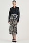 Black Nylon Tulle Monochrome Lace Embroidered Midi Skirt