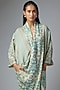 Featuring a green dress in dupion base with print and embroidery. Accentuate it with dangler earrings and heels for a cocktail party.