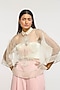 Featuring an ivory sheer top in nylon base with applique and diamond braid detail. Style it with pants for formal lunches, office parties, or semi-formal events.