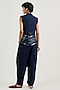 Tarun Tahiliani features navy blue trousers in linen base with cross-pleat detail. Accentuate it with a top, minimal jewellery and heels for evening wear.