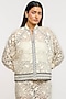 Featuring a white bomber jacket in nylon with paisley hand embroidery. Style it with pants for formal lunches, office parties, or semi-formal events.