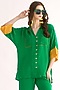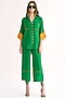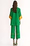 Featuring an emerald green shirt in silk crepe base with yellow cuffs and patch pockets. It is paired with matching pants.